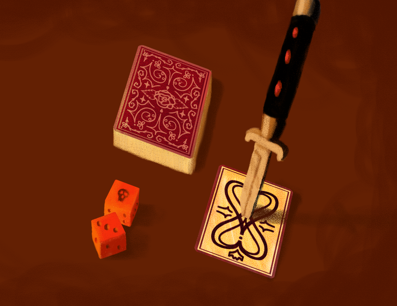 Exorcise the monsters living in this manor using some unconventional methods. Use your dice to deal damage and then place your cards to enhance your strength, regain health, or even reroll. After each exorcism, buy items at the shop with the souls you collected. Try to meet your quota without meeting your end on the job. Good luck to you, monster hunter.